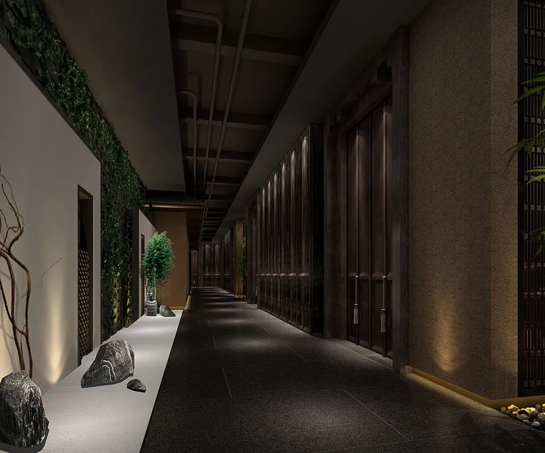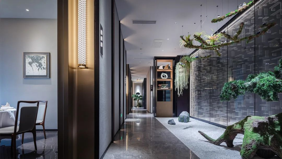 連接各包房的走道、過廳高大寬敞、凹凸有致,空間氣質散發出休閑、文化的氣息,同時恰到好處的植入海洋文化元素,點明場所精神。玲瓏精致的用餐環境,徜徉其中仿佛可以聆聽到清脆的鳥鳴,又似漫步于春天的森林邊緣……