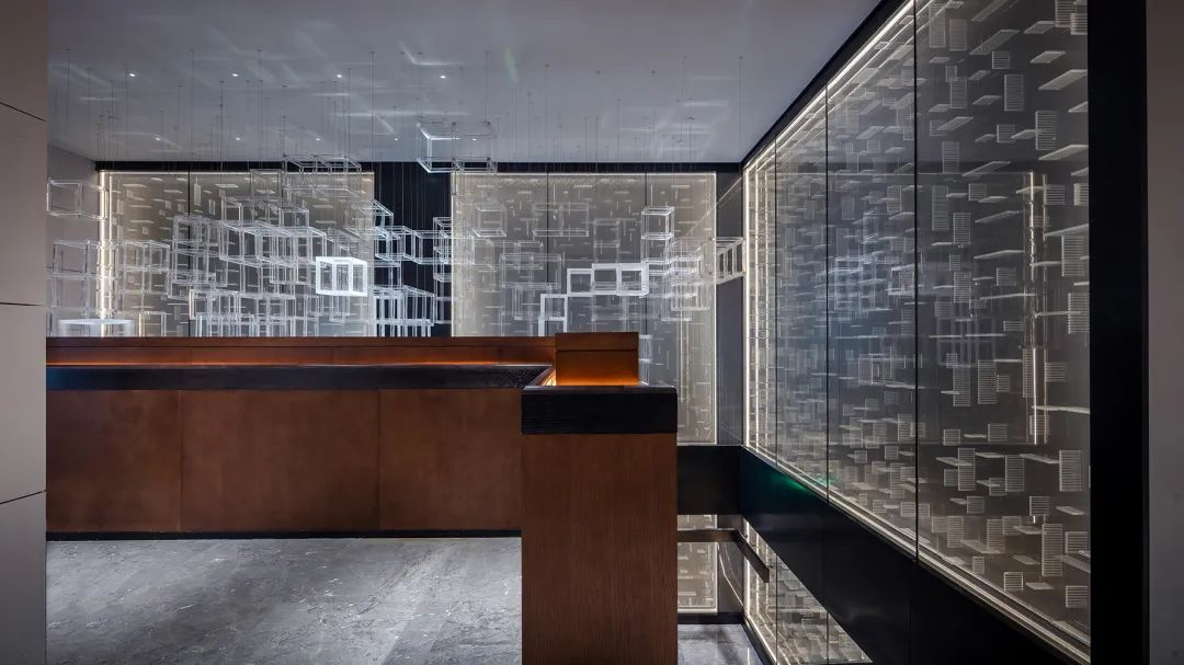 迎賓門廳玲瓏剔透的“魚籠”吊飾,帶你進入不一樣的“捕魚”之旅……入口大廳營造“海鮮”主題,以現代抽象手法把接待臺演變成暗礁,點睛的紅色軟飾成為迷人的紅珊瑚,與接待背景遨游在海底世界的抽象魚群相映成趣。