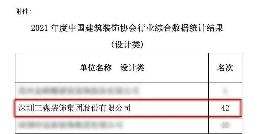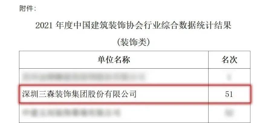2023年3月15日,備受關注的行業重磅榜單“2021年度中國建筑裝飾行業綜合數據統計”結果公布,三森集團再度上榜,且整體排名穩中上升。